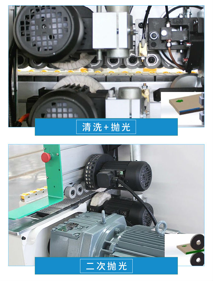 分離劑→預銑→EVA涂膠1→氣動多輪帶清壓貼→上膠鍋涂膠→多輪帶清壓貼→前后齊頭→粗修→精修→雙頭跟蹤→刮邊→打側孔→清洗劑→拋光