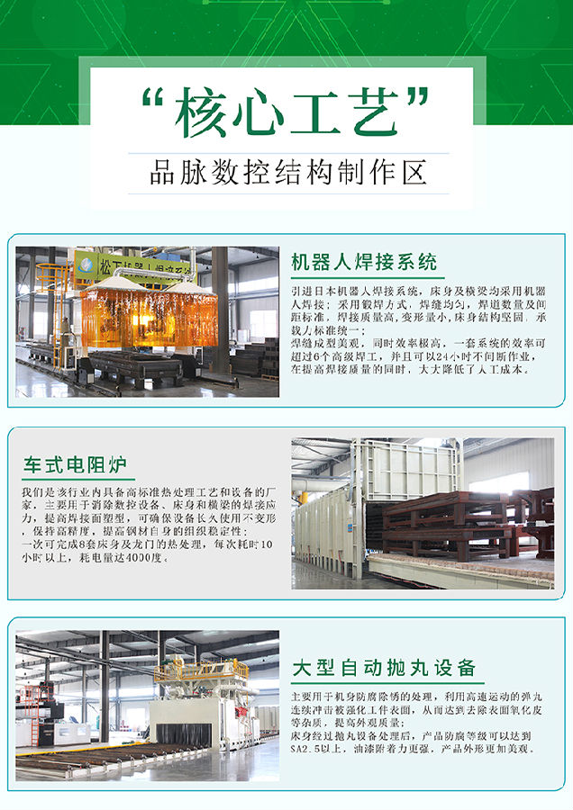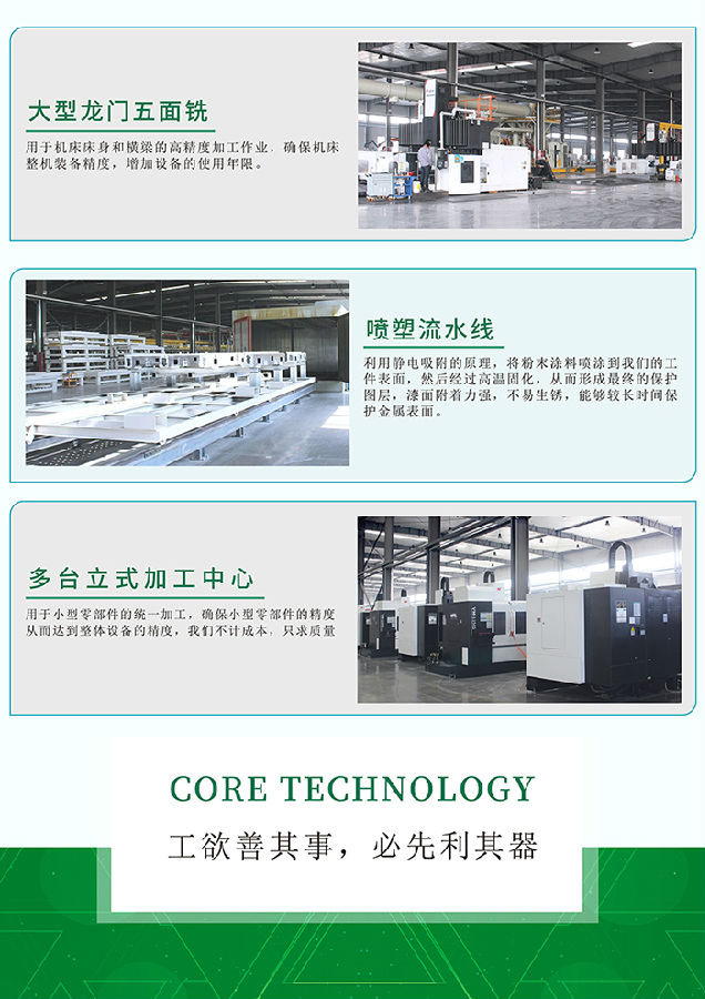 公司總建筑面積7萬余平方,2020年總投資3.6億元建設(shè)齊河新廠區(qū)并投入使用。廠區(qū)建設(shè)有高標(biāo)準(zhǔn)生產(chǎn)車間、研發(fā)中心、用戶體驗中心、綜合辦公樓及配套設(shè)施。項目裝備了國內(nèi)首條木工機(jī)械制造流水線,采用信息化、標(biāo)準(zhǔn)化和精細(xì)化管理模式,同時,弓|進(jìn)國內(nèi)外先進(jìn)的檢測設(shè)備和檢測手段,實現(xiàn)關(guān)鍵工序100%檢測,確保產(chǎn)品出廠合格率100%。項目投產(chǎn)后,具備年產(chǎn)5000臺木工、石材及金屬加工設(shè)備的能力。