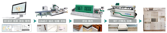 自動(dòng)貼標(biāo)數(shù)控加工中心,由全自動(dòng)上下料木工數(shù)控加工中心以及數(shù)控自動(dòng)貼標(biāo)機(jī)兩臺(tái)設(shè)備組成;通常用于板式家具尤其全屋定制家具自動(dòng)貼標(biāo)自動(dòng)切割加工;后端可搭配數(shù)控側(cè)孔機(jī)或者PTP、數(shù)控五面鉆、六面鉆等設(shè)備;其中搭配數(shù)控五/六面鉆,前端自動(dòng)貼標(biāo)開料加工中心不需翻板加工,適合定制家具高效率規(guī)?;a(chǎn)。