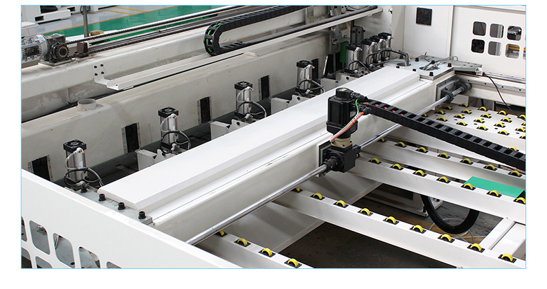 ◆進(jìn)料區(qū)采用氣動(dòng)浮珠臺(tái)面,防止板材表面劃傷,減輕上料勞動(dòng)強(qiáng)度;