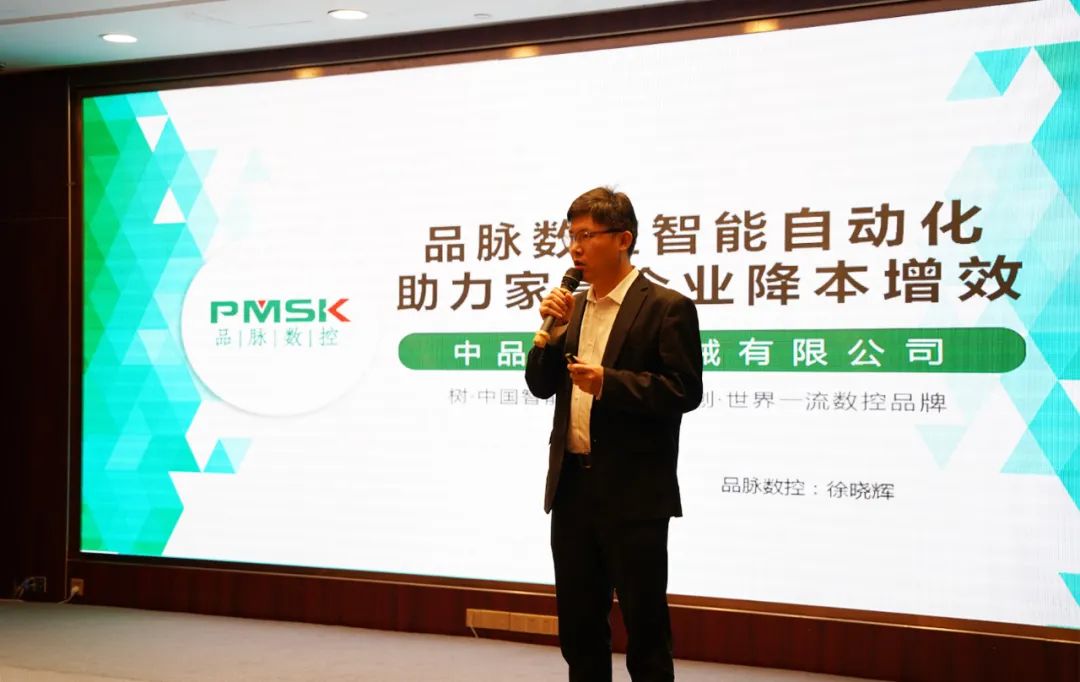 會議上品脈數(shù)控銷售部經(jīng)理:徐曉輝作"智能自動化助力家具企業(yè)降本增效"專題分享,針對當前家具企業(yè)的需求,提供了降低成本,提高效率等一系列切實可行的方案。